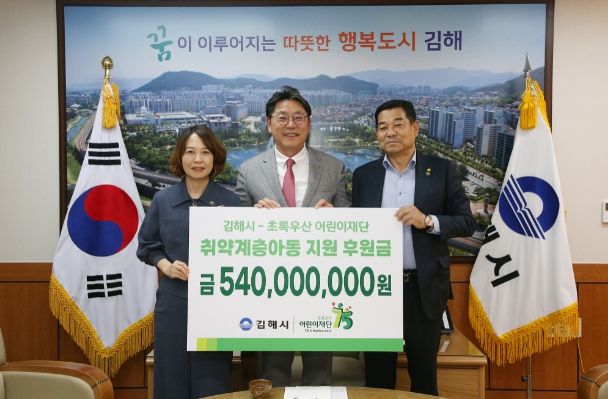 [제주교통복지신문 김강석 기자] 김해시는 10일 오후 3시 시장실에서 초록우산어린이재단 경남지역본부와 김해 취약계층 아동 지원을 위한 후원금 약정식을 개최했다.