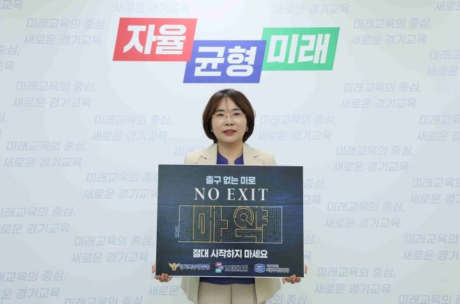 [제주교통복지신문 김강석 기자] 한정숙 경기도교육청 제2부교육감이 10일 마약중독의 위험성을 알리고 경각심을 높여 마약범죄를 예방하기 위한 ‘NO EXIT’마약범죄 예방 릴레이 챌린지에 동참했다.