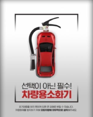 차량용소화기는 인터넷이나 대형마트, 소방시설 판매업체 등에서 쉽게 구매 가능하며 차량용 소화기는 현행법상 승차정원 7인 이상의 승용자동차 및 경형 승합자동차에 비치해야 하지만 오는 2024년 12월부터는 5인승을 포함한 모든 승용차로 대상이 확대된다.