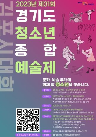 [제주교통복지신문 김강석 기자] (재)김포시청소년재단 중봉청소년수련관 주관으로 제31회 경기도청소년종합예술제 김포시대회를 개최한다. 청소년의 예술적 성장을 도모하고 재능을 표출할 수 있는 청소년 참가자를 5월 15일부터 31일까지 모집한다.