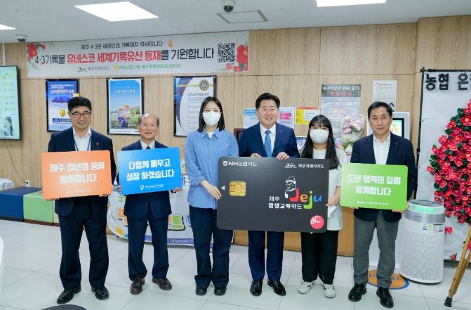 오영훈 지사는 제주평생교육카드 발급 첫날인 이날 오전 9시 30분 고승한 제주평생교육장학진흥원장과 고우일 농협은행 제주지역본부장과 함께 농협은행 제주도청점을 찾아 카드를 발급 받는 청년들을 격려했다.