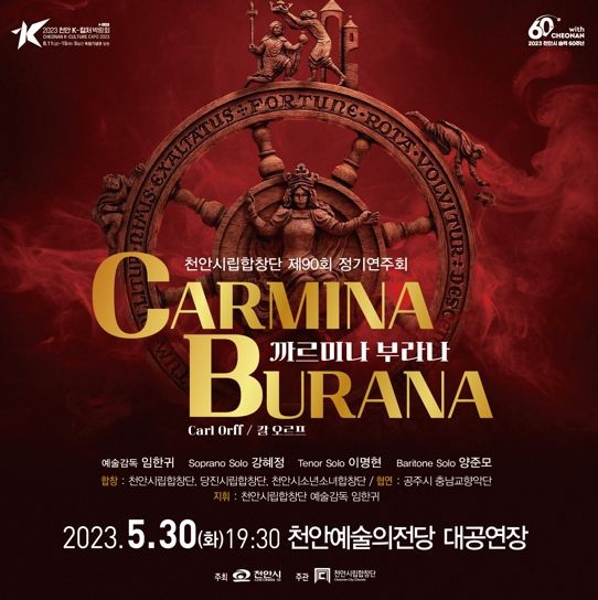 20세기 독일 작곡가 칼 오르프의 대표작인 까르미나 부라나는 강렬하고 다양한 리듬의 타악기와 오케스트라가 합창과 함께 극적으로 연출되는 종합예술이다.