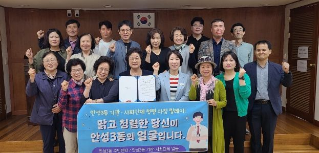 한편 청렴다짐 릴레이 결의대회는 안성3동 기관사회단체를 중심으로 청렴한 사회를 조성하기 위해 매월 실천을 다짐하고 있다.