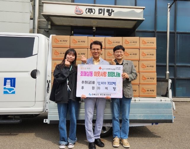 [제주교통복지신문 김강석 기자] 지난 10일 화성시 기안동에 위치한 ㈜미당은 가정의 달을 맞아 호매실동 어려운 이웃들의 식사 지원을 위해 탕, 찌개 245박스를 호매실동에 후원했다.