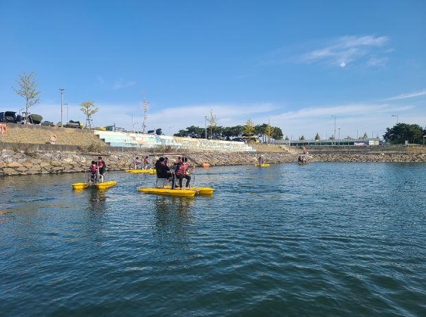 김포시에 따르면 수상레저기구체험은 ▲수상안전교육 ▲생존수영이론 ▲마리나시설교육의 3가지 이론교육과 ▲수상자전거체험 ▲카약 ▲모터보트체험의 3가지 기구체험으로 구성돼 있다. 이 프로그램은 매년 높은 인기로 예약 시스템 오픈과 동시에 마감된다.