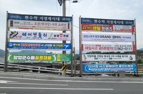 현수막은 표시신고 후 15일 이내의 범위에서 지정게시대에 게첨할 수 있으며, 안전도시과에서는 도로변 게첨, 미신고 현수막 등 불법광고물 철거 전담인력을 운영 중이다.