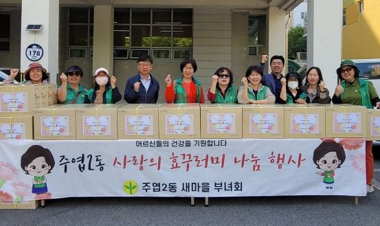 박교원 주엽2동장은 “효 꾸러미 나눔 행사를 주관하며 애써주신 새마을부녀회 회원 분들과 적극적으로 도움을 주신 복지관 직원 분들께 감사드린다. 어르신들의 건강과 행복을 기원하며, 어르신들이 행복한 주엽2동이 되도록 노력하겠다.”고 전했다.