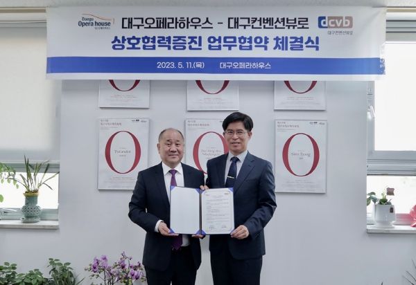 [제주교통복지신문 김강석 기자] 대구오페라하우스가 지난 5월 11일, 문화예술과 마이스(MICE)산업의 상호협력을 통한 도시브랜드 가치 제고 및 국제교류 활성화를 위해 대구컨벤션뷰로와 업무협약을 체결했다.