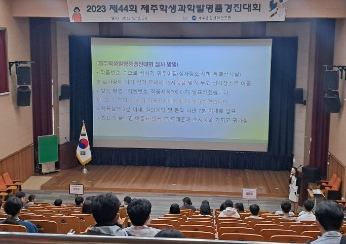 [제주교통복지신문 박희찬 기자] 제주도교육청 제주융합과학연구원은 5월 12일 '2023 제주학생과학발명품경진대회'를 개최했다. 이번 대회에서는 과학적인 사고와 창의력을 기반으로 한 다양한 주제의 발명품들이 출품됐다.