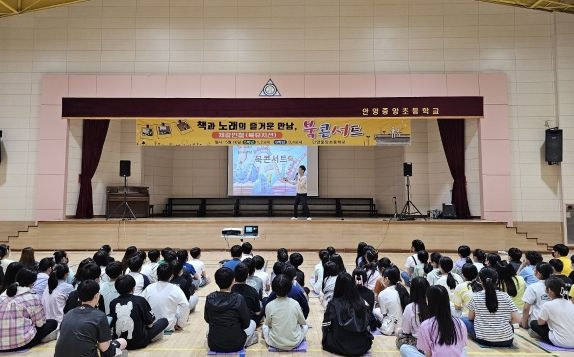 [제주교통복지신문 김강석 기자] 안양중앙초등학교 (교장 이양기)는 5월 16일, 5~6학년을 대상으로 ‘책과 노래의 즐거운 만남’이란 주제로 북 뮤지션이자 작곡가인 제갈인철 강사를 초청해 북콘서트를 개최했다.