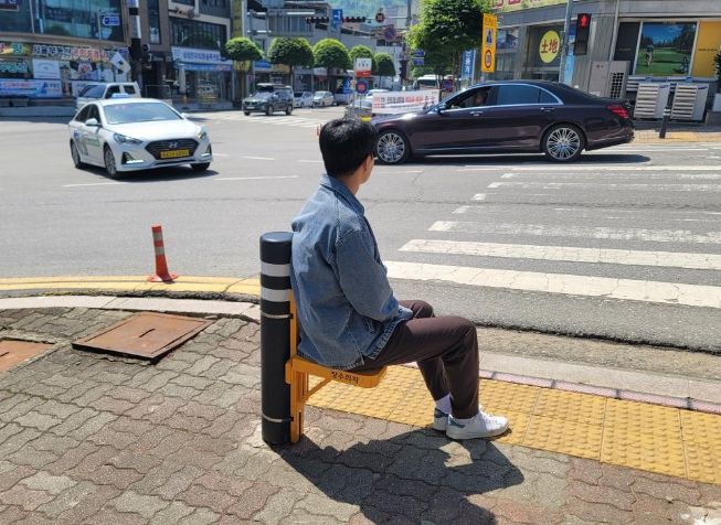 군은 허리와 다리 통증으로 인한 교통약자들의 무단 횡단을 방지해 지역 교통사고 발생률을 낮출 목적으로 장수의자를 설치했다.