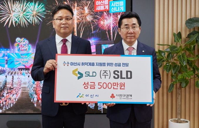 [제주교통복지신문 김강석 기자] ㈜SLD가 지난 16일 아산시를 방문해 성금 500만원을 기부했다. 성금은 충남사회복지공동모금회를 통해 지역사회 복지증진을 위한 취약계층 지원에 사용될 예정이다.