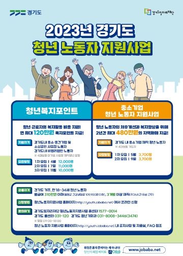 경기도 청년 노동자 지원 사업은 경기도 청년 노동자들의 처우개선과 복지향상을 위해 2018년부터 시작한 사업으로 청년 복지포인트와 중소기업 청년 노동자 지원 사업으로 나뉘어 진행된다. 참여 대상은 경기도 소재 중소기업 등에 주 36시간 이상 근무하면서 월 급여 310만 원 이하인 만 18~34세 경기도 거주 청년이다.