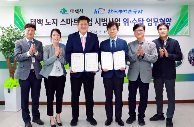 [제주교통복지신문 김강석 기자] 태백시는 노지 스마트농업 시범사업을 성공적으로 추진하기 위해 5월 16일 한국농어촌공사 강릉지사와 위·수탁 업무협약을 체결했다.