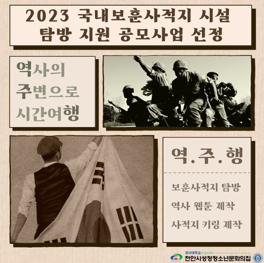 참여 청소년은 도내 6·25전쟁이나 3·1운동 관련 보훈 사적지를 탐방하고 역사 웹툰과 사적지 키링을 제작해 국내 보훈사적지를 홍보할 계획이다.