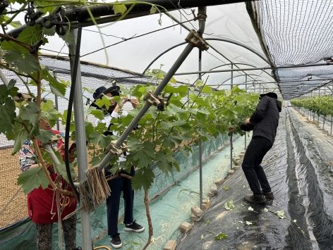 포도농가는 매년 5월~6월이면 포도 순 따기, 지베린 처리, 알 솎기까지 눈코 뜰 새 없이 바쁜 시기지만, 최근 코로나19 여파로 인력을 구하기 어려워 농촌 일손이 턱없이 부족하여 농가마다 많은 어려움을 겪고 있다.