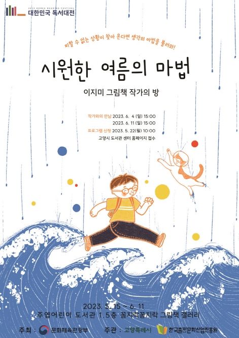 [제주교통복지신문 김강석 기자] 고양특례시는 2023 대한민국 독서대전 개최를 기념해 지난 15일부터 한 달 동안 세계그림책 특성화 주엽어린이도서관 꼼지락 꼼지락 그림책 갤러리에서 '이지미 작가의 방, 시원한 여름의 마법' 전시회를 열고 있다.