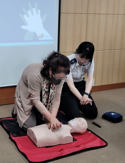 이날 교육은 구호 조치를 위해 신속한 심폐소생술의 필요성을 알리고, 일상에서 가족이나 이웃이 위급한 상황이 발생했을 때 신속히 응급조치를 할 수 있도록 실습 위주로 진행됐다.