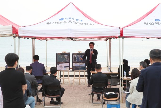 이 자리에는 김정헌 중구청장, 김동현 왕산해수욕장 번영회장, 시 및 구 관계 공무원, 지역주민, 용역사 관계자 등 20여명이 참석, 왕산 해변 모래 유실 현상에 대한 보고 후 용역 수행 방향 등을 논의했다.