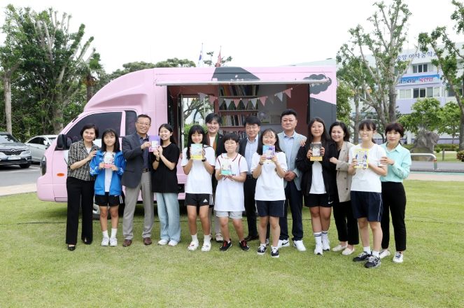 이번 출정식에서는 인ㆍ지ㆍ감 별난 북트럭의 제막식과 더불어 서귀중앙여자중학교 1학년 학생과 학부모독서동아리 회원 및 교직원에게 책 한 권을 선물하는 책 나눔 행사도 가졌다.