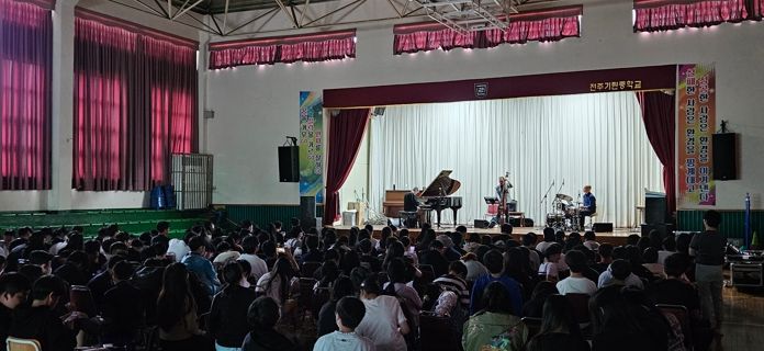 [제주교통복지신문 김강석 기자] 전주시 평생학습관은 지난 19일 전주기린중학교 강당에서 180여 명의 학생이 참석한 가운데 재즈공연을 개최했다.