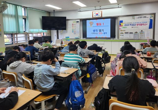 ‘책 읽고 생각플러스’는 이와 연계해 독서 마라톤을 진행했던 학급의 신청을 받아 꾸러미 도서 중 한 권을 활용해 독후활동을 하는 프로그램이다. 전문 강사가 학교로 찾아가 책 읽고 생각 나누기, 독서토론 등을 함께 진행한다.