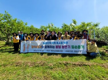 [제주교통복지신문 김강석 기자] 우승희 영암군수는 지난 5월 19일 광주여자대학교 학생 30여명이 참여한 영암읍 단감 재배농가 일손돕기 현장을 찾아 격려했다.