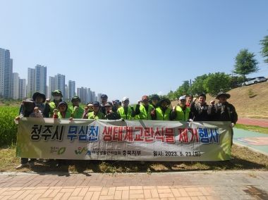 이번 행사는 무심천변에 퍼져 있는 생태계교란식물을 퇴치해 토착식물 서식공간을 확대하고, 생물다양성을 증진시키는 한편 교란식물 위해성에 대한 시민의 인식을 제고하기 위해 실시됐다.