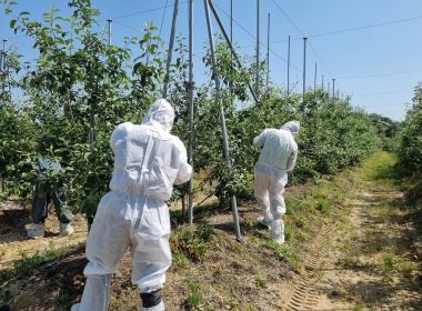 농가 관계자는 “농촌의 고령화로 일손이 부족한 어려운 시기에 일손 돕기가 큰 도움이 됐다”며 “더운 날씨에도 사과 적과 작업을 적극적으로 도와준 관계 공무원들에게 감사하다”고 말했다.