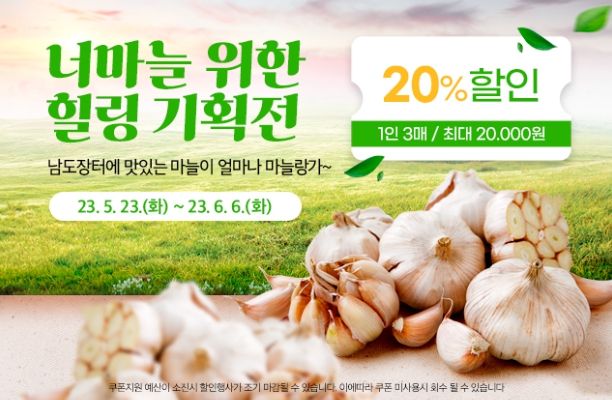 온라인 특판행사는 23일부터 6월 6일까지 전남도 대표 온라인 쇼핑몰인 ‘남도장터’에서 진행된다. 마늘 관련 모든 상품을 최대 20% 할인된 가격에 판매하고, 11번가 등 제휴몰에서도 동시 진행한다. 주요 할인 상품은 일반 마늘, 깐 마늘, 흑마늘 진액 등 가공식품이다.