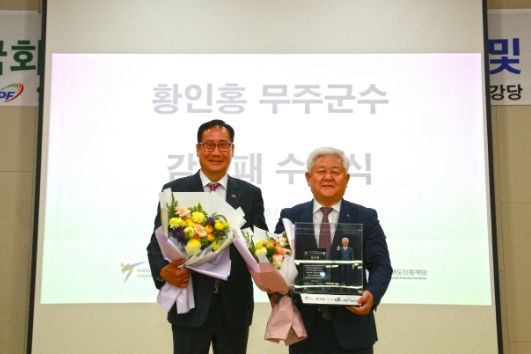 [제주교통복지신문 김강석 기자] 황인홍 무주군수가 지난 23일 태권도원 운영센터 1층 대강당에서 개최된 명사 특강에서 세계태권도연맹과 국기원, 대한태권도협회, 태권도진흥재단으로부터 감사패를 받았다.