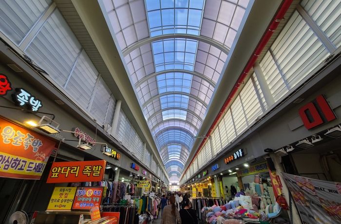 총사업비 18억원을 투입한 1차 구간은 길이 147m, 너비 7m, 높이 11m 규모의 아치형 구조로 비와 햇빛을 가려주는 역할 뿐만 아니라 채광과 환기 기능까지 더해 시장 환경이 한층 더 밝고 쾌적해졌으며 난연성 재질을 사용해 화재 안전성을 확보했다.