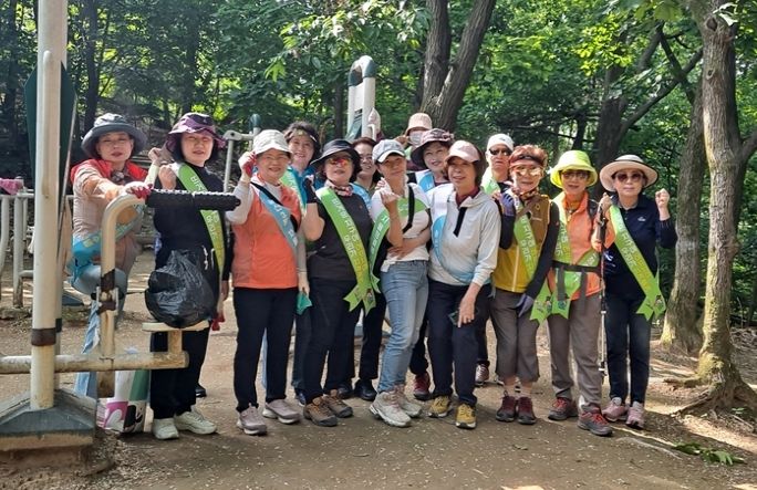 회원들은 추동근린공원으로 올라가는 소풍길을 걸으며 벤치, 안내표지판, 다리 난간 등을 물걸레로 깨끗이 닦아냈다. 또한 무단으로 버려진 폐기물, 생활쓰레기를 주우며 쾌적한 부용산 소풍길 환경을 조성했다.