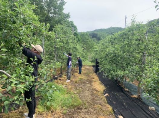 농장주는 “일손을 찾기 어렵고 사과 적과는 미룰 수 없는 어려운 상황이었는데, 공무원과 여러 봉사 인력들이 함께 해줘 일손 부담을 많이 덜게 됐다”라며 고마운 마음을 전했다.