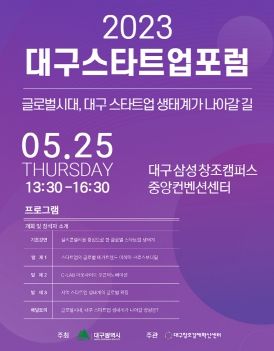 [제주교통복지신문 김강석 기자] 대구광역시는 대구창조경제혁신센터와 함께 ‘글로벌시대, 대구 스타트업 생태계가 나아갈 길’이라는 주제로 대구 스타트업 포럼을 5월 25일에 대구삼성창조캠퍼스 중앙컨벤션센터에서 개최한다.