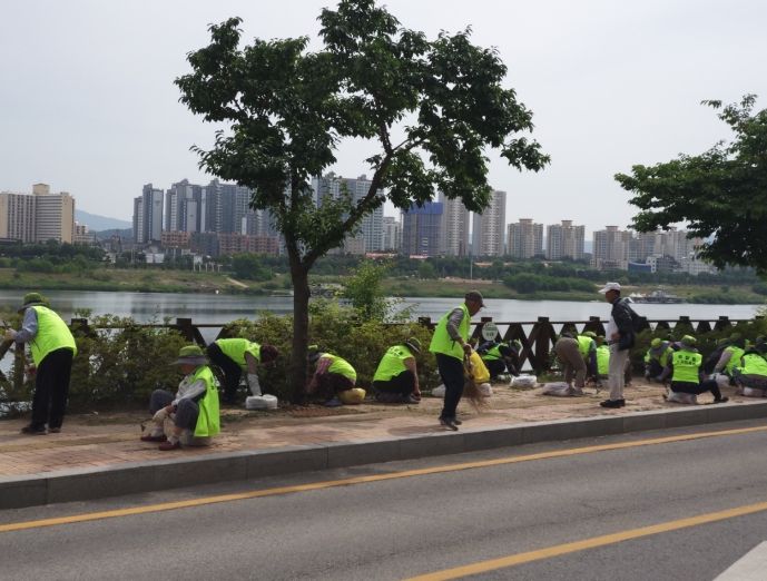 중앙동 노인일자리에 참여중인 어르신들을 중심으로 여주초교 뒤편부터, 창동과 하동 도로변 잡풀 제거 등 양섬까지 이어지는 강변길을 말끔하게 정비하고 있다.