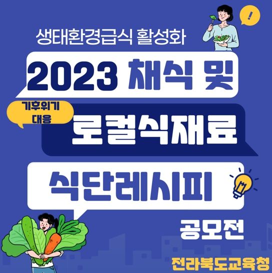 기후위기 환경생태교육의 일환으로 실시하는 이번 공모전은 육류 위주의 식습관으로 대두되고 있는 학생들의 영양불균형 문제를 해소하고, 전북교육청의 저탄소 환경급식 정책에 대한 인식을 높이기 위함이다.