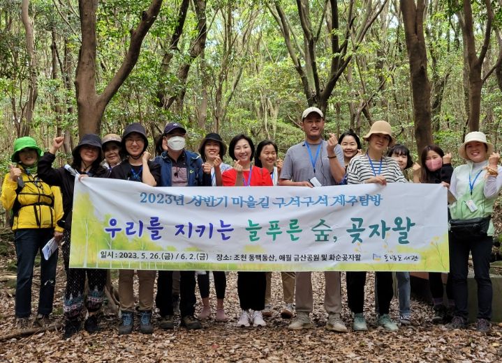 이번 1차‘마을길 구석구석 제주탐방’은 제주 동부지역에 위치한 조천읍 동백동산을 찾아 강태유 숲해설가의 설명과 함께 동백동산에 살고 다양한 나무들과 멸종위기종 등을 찾아보며 습지로서 동백동산의 가치를 알아보는 시간을 가졌다.