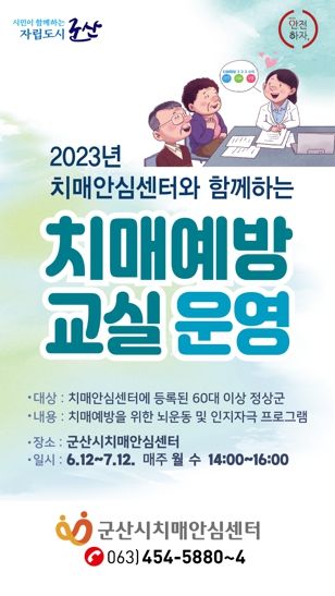 한편, 치매예방교실 등 치매프로그램에 관심이 있는 신청자는 군산시 치매안심센터로 연락하면 되고, 치매조기검진 및 치매치료관리비 등 치매에 관한 기타 문의는 전화로 연락하면 된다.