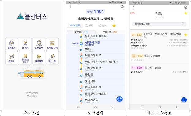 ‘울산버스정보 모바일 앱’은 시민들이 정류장에 직접 나오지 않아도 스마트폰으로 버스 도착 예정시간을 검색할 수 있는 앱 서비스로 지난 2011년부터 운영 중이다.