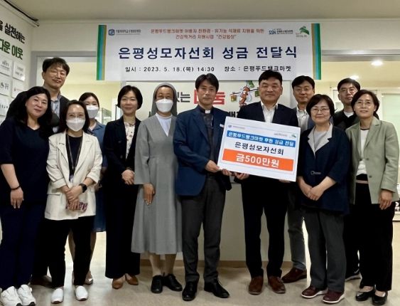 은평성모자선회는 은평성모병원 교직원들이 정성껏 모은 성금 500만원을 은평푸드뱅크마켓에 전달했다. 은평푸드뱅크마켓은 사회복지시설 및 등록 이용자에게 식품 등 생활용품을 지원하는 시설로, 이날 전달한 성금 전액은 건강 먹거리 지원사업 ‘건강밥상’을 통해 푸드마켓 이용자에게 친환경 유기농 식재료를 지원하기 위해 사용될 예정이다.