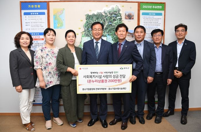 [제주교통복지신문 김강석 기자] 중소기업중앙회 전북지역본부가 완주군에 소재한 사회복지시설 은혜의 동산에 온누리상품권 200만원을 전달했다.