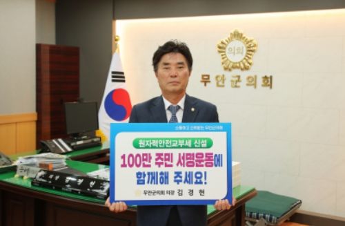[제주교통복지신문 김강석 기자] 무안군의회 김경현 의장이 원자력안전교부세 신설을 촉구하는 100만 주민 서명운동에 동참했다.