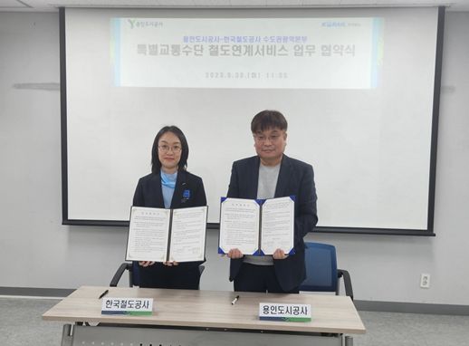 [제주교통복지신문 김강석 기자] 용인도시공사는 지난 30일 교통약자의 이동편의 증진을 위해 한국철도공사 수도권 광역본부와 업무 협약식을 진행했다고 밝혔다.