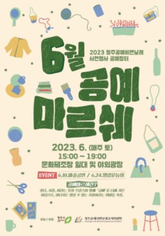 청주공예비엔날레조직위원회는 6월 한 달 매주 토요일 15시~19시마다 문화제조창 야외광장에서 ‘어마어마 페스티벌’사전행사 ‘공예마르쉐’를 진행한다고 밝혔다.