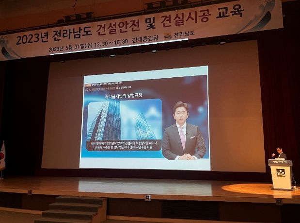 건설공사에 대한 안전의식 강화 및 근원적 부실시공 예방을 위해 마련된 이날 예방교육엔 전남도와 22개 시군 건설업무 관련 공무원과 현장 소장, 건설사업 관리자 등 건설 관련 종사자 500여 명이 참석했다.