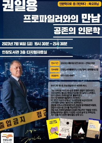 7월 첫 번째 테마인 《공존의 인문학 : 북 오프닝》은 우리나라 제1호 프로파일러로 널리 알려진 권일용 교수를 초빙해, 그의 저서인 '악의 마음을 읽는 자들'을 바탕으로 현대인의 일상을 위협하는 범죄와 범죄자들의 심리를 파악하고 범죄 예방 대처방안에 대해 북토크 형식으로 진행될 예정이다.