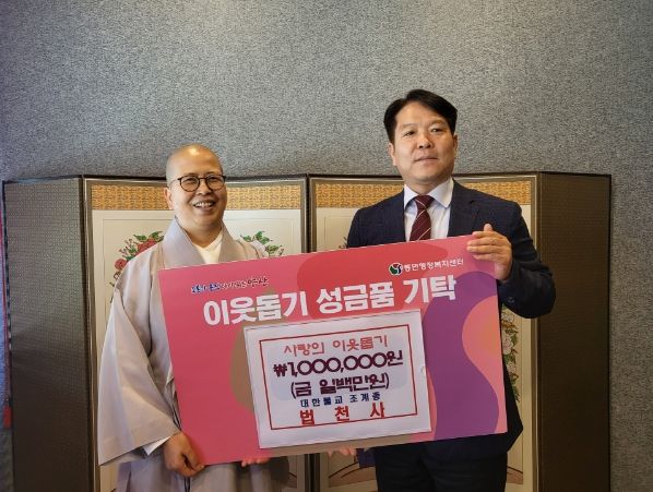 김종덕 동면장은 “스님과 불자분들에게 감사함을 전한다”며 “인정과 사랑이 넘치는 동면을 만들어 가는 복지사업에 소중히 사용하겠다”고 전했다.