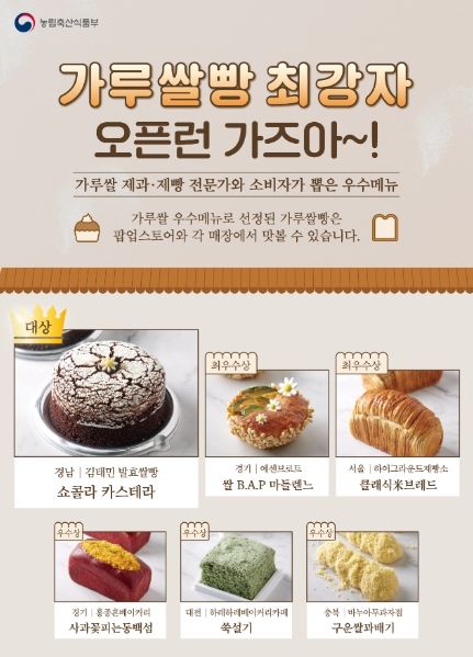 농식품부는 가루쌀빵 신메뉴 개발을 위해 지난 3월 30일 대한민국 제과명장, 지역 명인, 제과기능장 등을 대상으로 공모를 통해 동네빵집 19개 업체를 뽑았고, 각 업체는 가루쌀 특성을 반영한 76종의 신메뉴를 개발했다. 이후 제과·제빵 전문가 15명, 소비자단체(한국부인회 총본부) 33명으로 구성된 심사위원단은 맛, 시장성, 창의성, 가루쌀 배합비율(가루쌀 외 밀가루 사용 불가) 등을 기준으로 19개의 우수메뉴를 최종 선정했다.