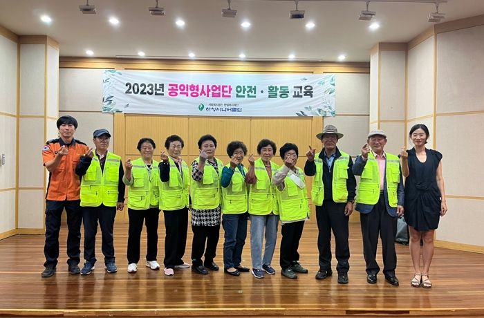 2023년 노인일자리 공익형 참여자 850여 명을 대상으로 이뤄진 이번 교육은 노인일자리 참여자에 대해 공익형 최소 12시간, 사회서비스형 최소 16시간, 시장형 최소 14시간을 수행해야 하는 노인일자리 관련 규정에 의해 추진됐다.